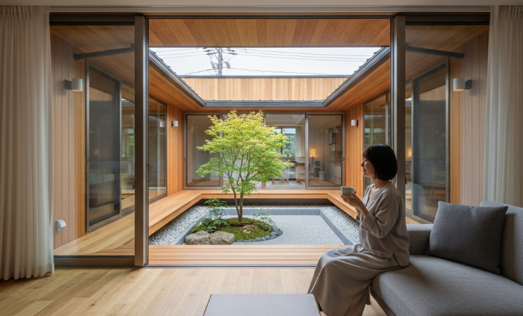 すべての部屋が中庭に面するように設計すれば、どの部屋にも安定した採光と通風を確保できます。