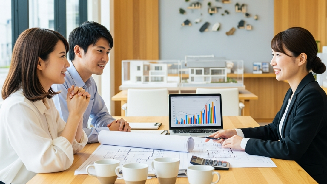- 相談・計画フェーズ: 興味が深まったら、専門スタッフとの個別相談に進みます。家族構成やライフプラン、予算などを伝え、資金計画を作成してもらいます。土地がまだ決まっていない場合は、この段階で土地探しのサポートも依頼します。