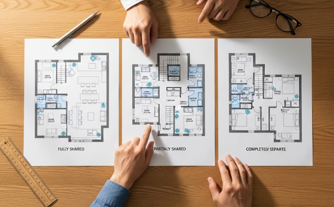• 間取りには完全共有、一部共有、完全分離の3タイプがあり家族の形に合わせて選ぶ