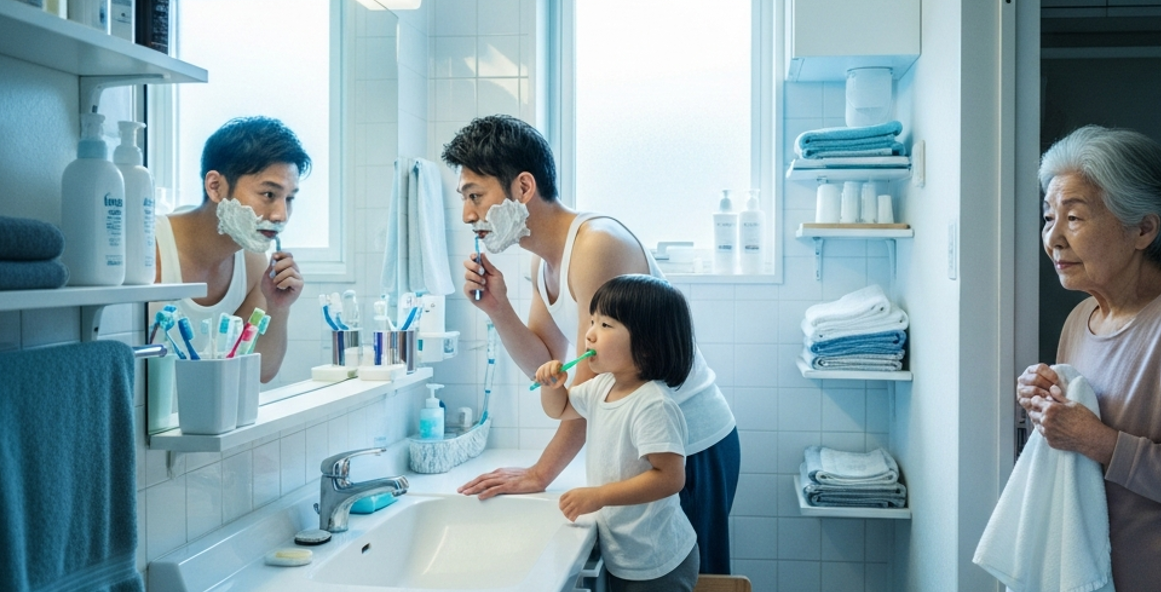 朝の忙しい時間帯、出勤準備や通学準備で洗面所が渋滞するのは、通常の家庭でもよくある光景です。