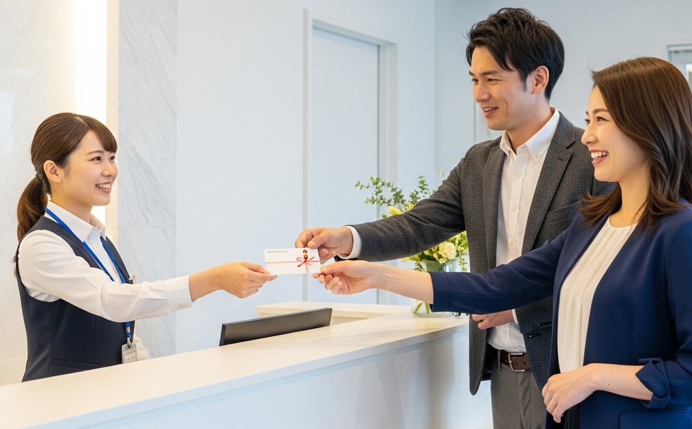 特典のギフト券などは、見学・相談が終わった後にその場で手渡されることが多いですが、後日郵送される場合もあります。