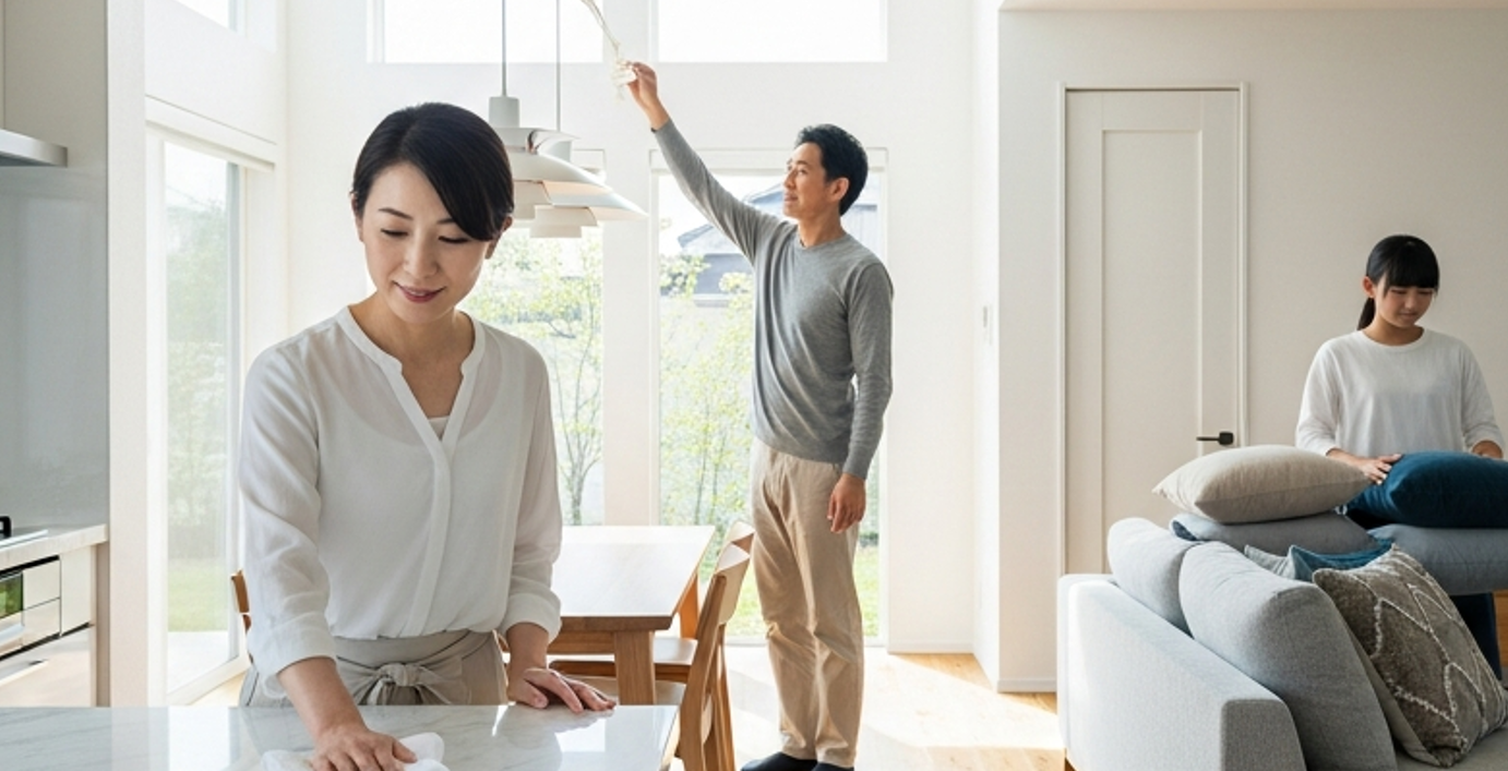 特に二世帯住宅は生活感が出やすいので、不要なものは思い切って処分し、スッキリとした空間を見せることが高評価に繋がります。